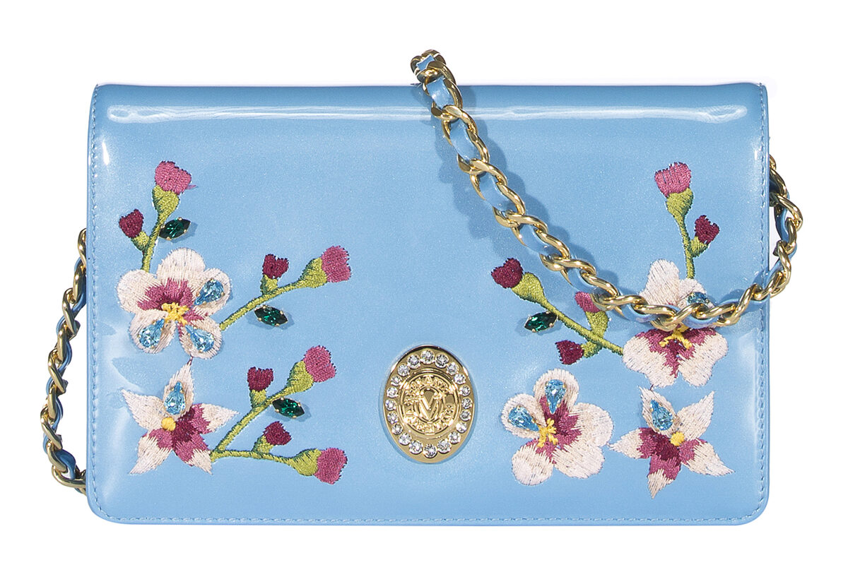 Sapore d’Oriente per pochette, tracolle e handbag in vernici perlate e morbidi vitelli, decorate agli angoli con dettagli in metallo dorato: ornamenti che riportano disegni e trame tipiche di culture lontane.